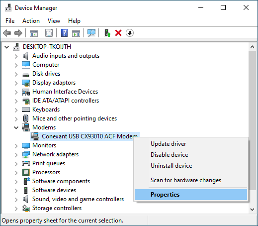 Step 3 - Right Click the "Conexant USB CX93010 ACF Modem" and Click