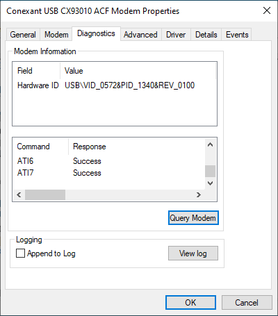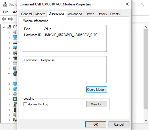 Step 4 - Click "Diagnostics" and then click "Query Modem".