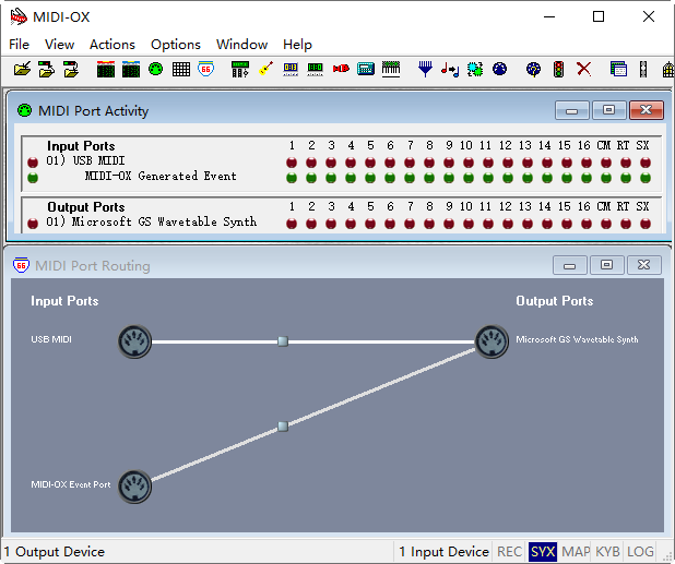 MIDI Port Activity  - Check the MIDI Input & Output Status